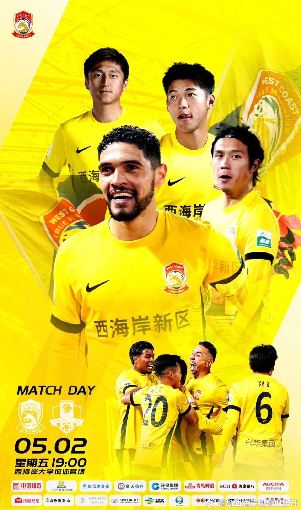 青岛西海岸首发:1-李昊、5-里切利(F)、6-徐彬、22-杨希、15-王鹏、20-何龙海、23-马特乌斯(F)、24-段刘愚、9-阿齐兹(F)、10-内尔松卢斯(F)、11-戴维森(F)